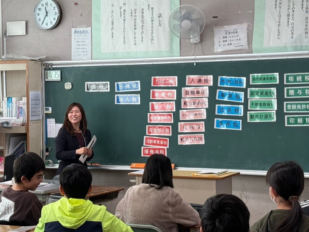 地域の小中学校などで租税教室を開催し、税の大切さや役割を子どもたちに直接伝えています。